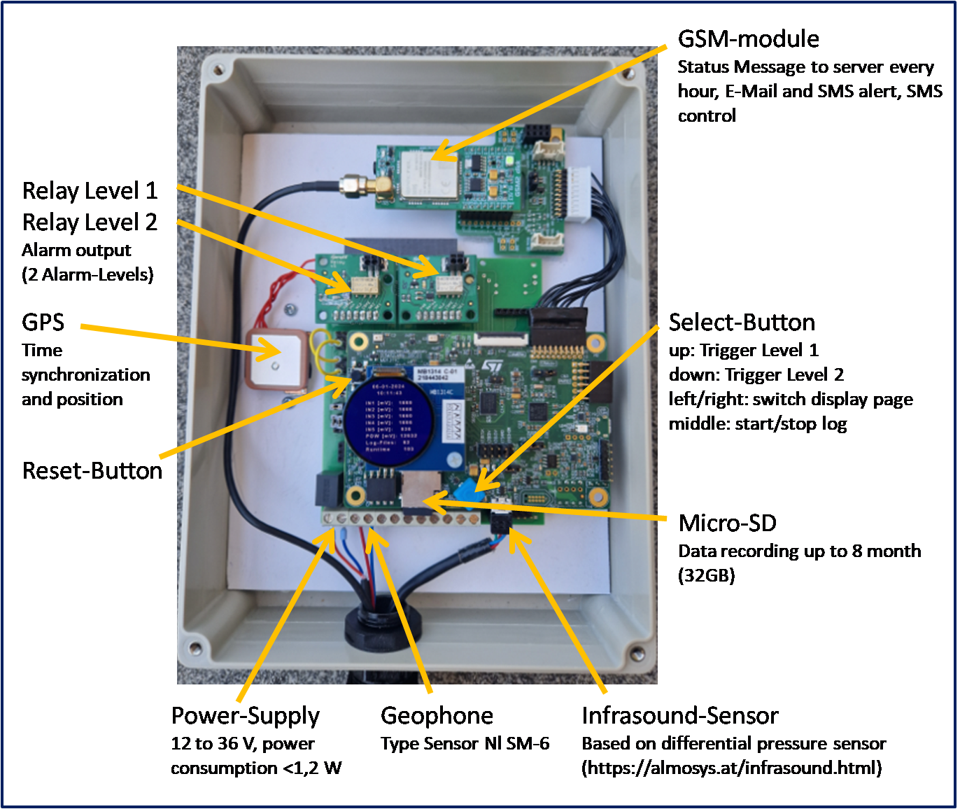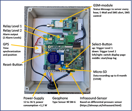 - Infrasound-Sensor: ALMOSYS IS-Sensor (up to 2 inputs)